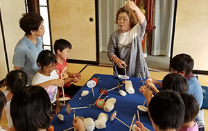 地元の学校とのかかわり福応寺では寺子屋活動の一環として地元の学校との関わりも大切にしています。地元小学校の地域の授業や歴史の授業で来山頂き説明をしたり、地元中学校の職業体験や部活動の坐禅体験等の受入をしています。学校に法話に出向いたりといった活動も行っています。また学童保育の子供達に様々な体験をして頂くために地元企業と提携して本堂にて各種寺子屋活動も行っています。 |